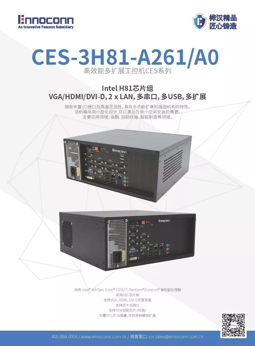 在人工智能的驅動下,自助服務終端充斥著每個行業,其市場規模不斷擴大,產品功能日趨智能化、完善化。富士康集團Ennoconn順應趨勢,致力為智能自助終端行業“添磚加瓦”。Ennoconn CES-3U系列金融設備主控機,為您提供智能自助終端解決方案,歡迎前來咨詢!